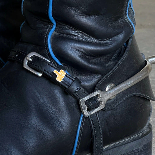 Von Totenkopf bis Flugzeug, von Blume bis Palme: Diese Sporenriemen mit Charms und Glitzer setzen ein klares Zeichen. Für alle Reiter*innen, die nicht einfach mitreiten – sondern auffallen wollen.