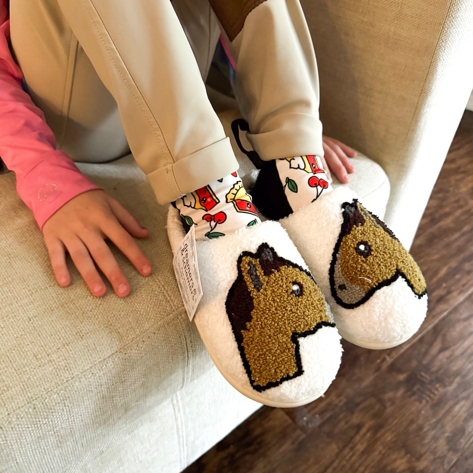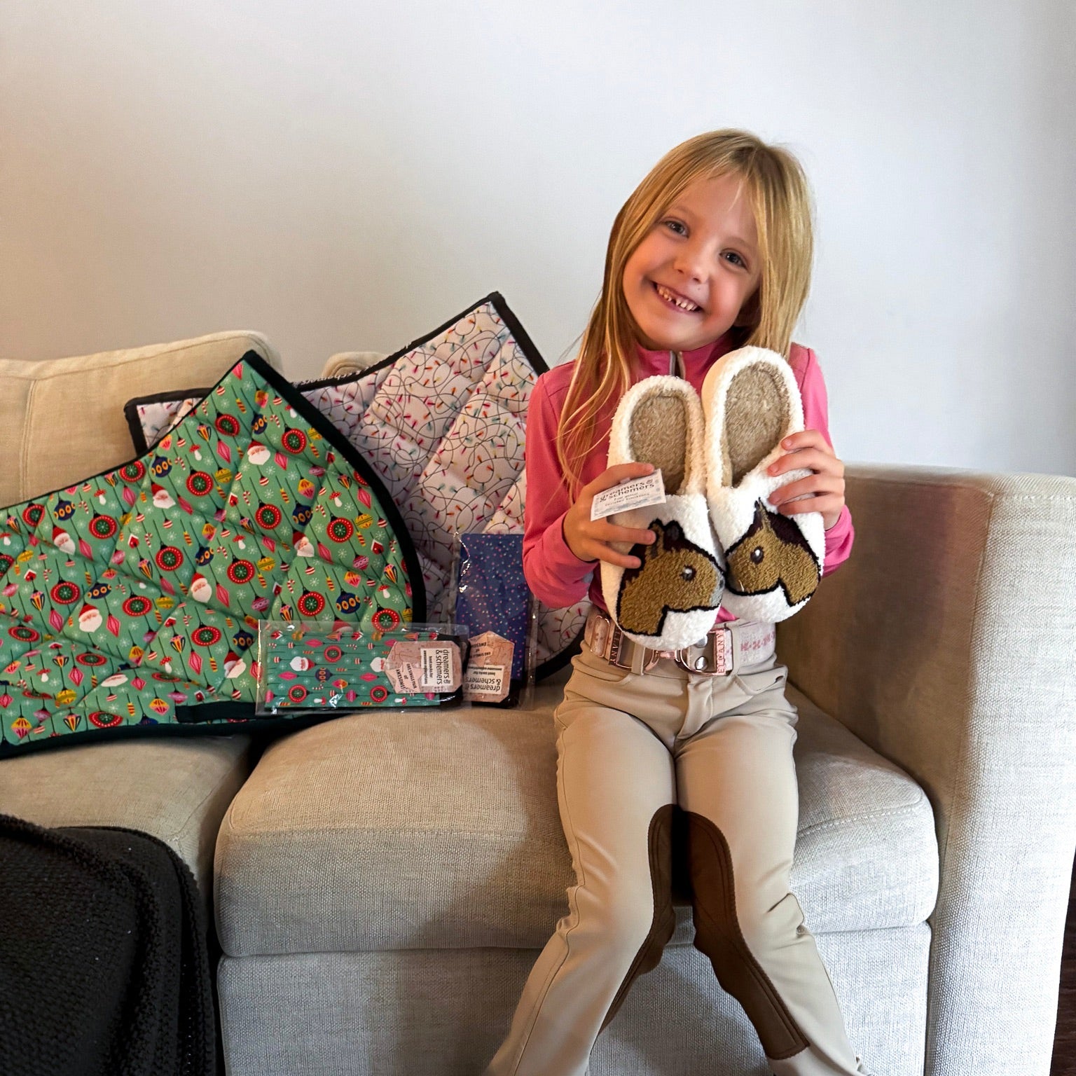 Unsere Hausschuhe sind wie gemacht für alle, die nach dem Stall nicht auf Style verzichten wollen. Außen superweiches Fleece, innen flauschiges Fake-Fur, das dich bei jedem Schritt verwöhnt. Und weil Pferdemädchen eben doch öfter nochmal raus müssen, haben sie eine robuste Gummisohle eingebaut – für den nächtlichen Stall-Check.