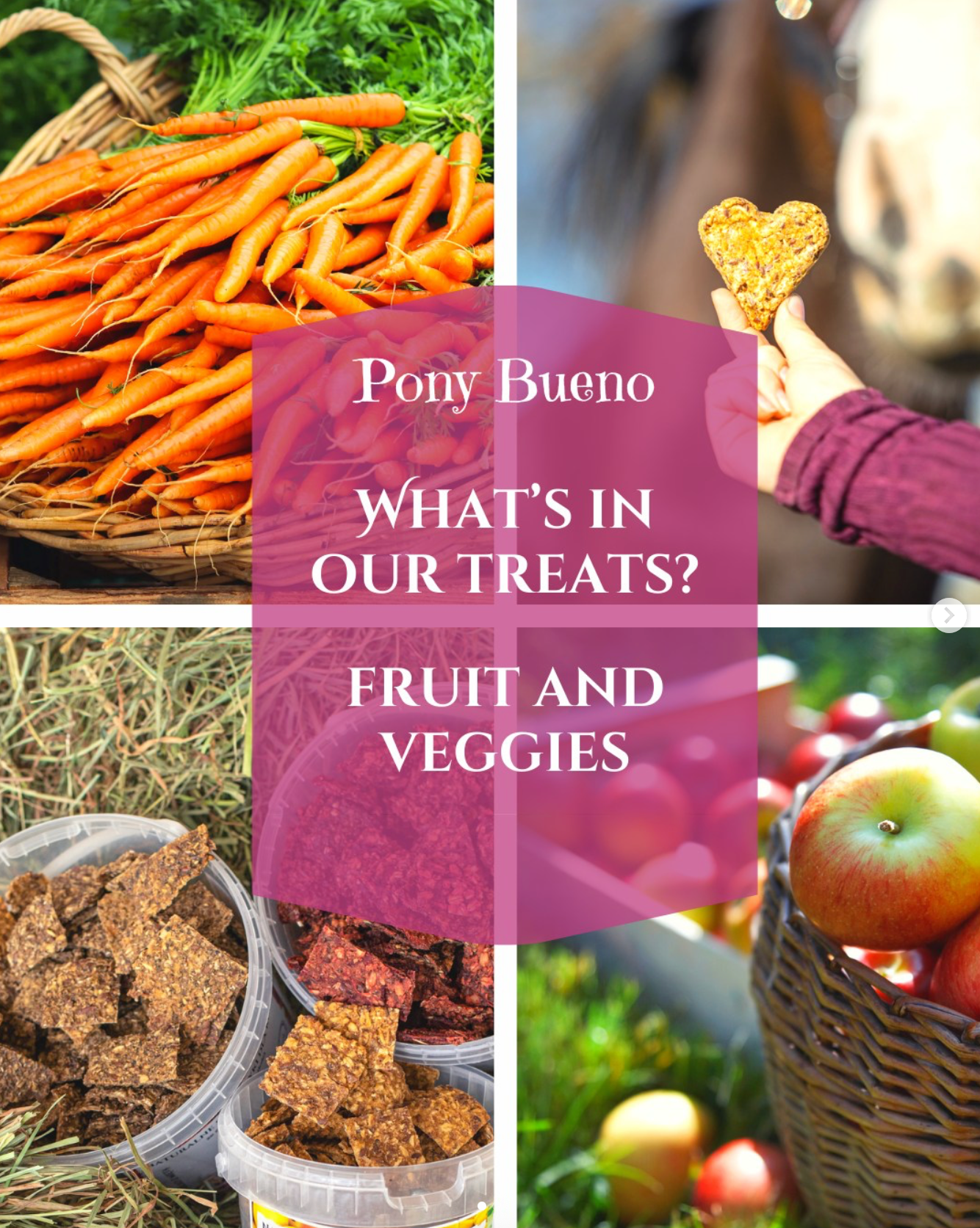 Seit 2016 steht Pony Bueno für handgemachte, natürliche Premium-Leckerlies für Pferde und Ponys. Entstanden aus dem Wunsch nach besseren Snacks fürs eigene Pferd, entwickelt die Marke heute kreative Belohnungen in besonderen Designs und limitierten Kollektionen – gebacken mit hochwertigen Zutaten, viel Know-how und ganz viel Herz.